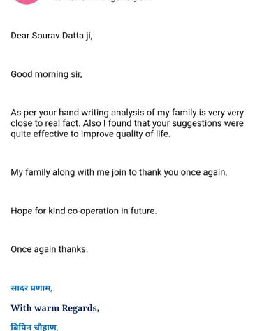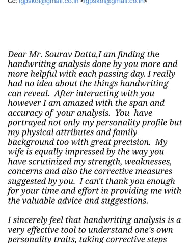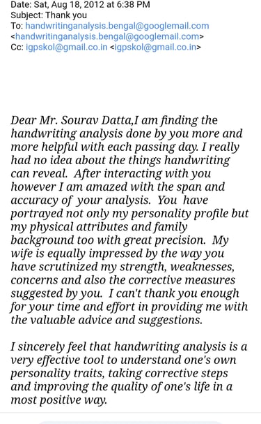 The courses at Institute de Graphology transformed my understanding of handwriting analysis. Mr. Sourav Dutta's expertise is unmatched, and the insights gained are invaluable!